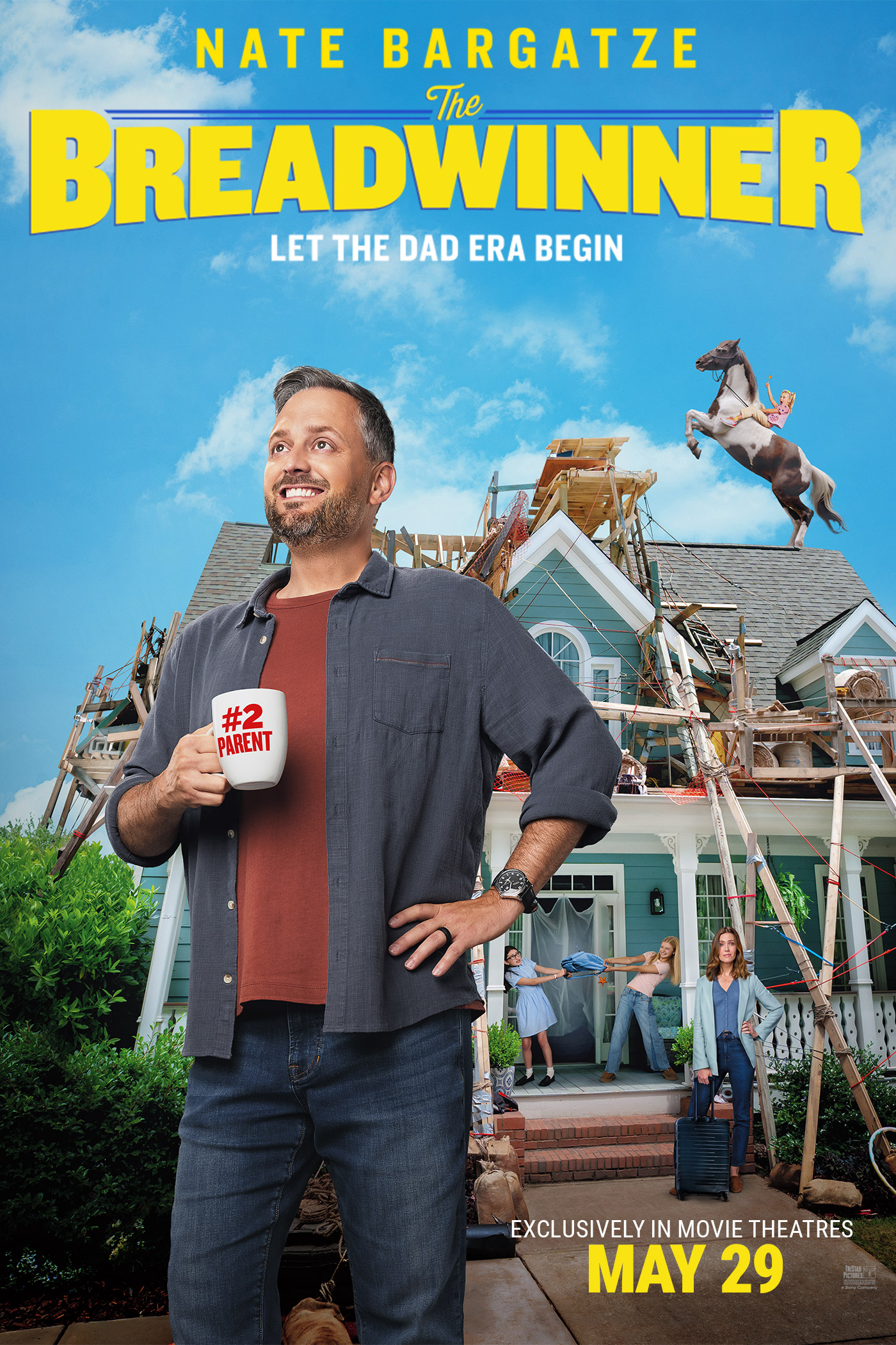 Starring record-shattering comedian Nate Bargatze in his first feature film, The Breadwinner stars Bargatze as salesman Nate Wilcox and Mandy Moore as his wife, Katie. To Nate and their three children, Katie is the ultimate mom - she manages their comically chaotic household with equal parts efficiency and love, and everything runs perfectly. But when Katie’s household invention leads to a once-in-a-lifetime deal on Shark Tank and takes her on a prolonged business trip, Nate has to figure out how to keep the house from (literally) falling apart. He and his kids soon learn that while he may not do it like mom, he can figure out how to do it his way. Welcome to the dad era.